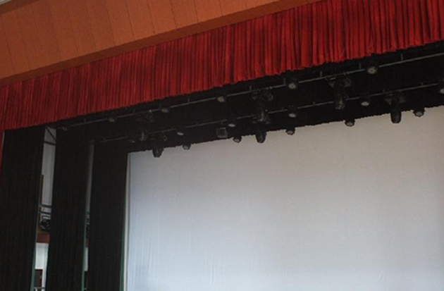 位于大幕前上臺口上的橫條幕,用作舞臺上檐,擋住觀眾對舞臺前檐上空的視線, 前檐幕與大幕形成配套,它起裝飾美化舞臺的作用; 前檐幕也稱會標幕,檐幕前面掛紅色標語布,可根據(jù)不同的會議、演出,自如更換標語布上的標語;面料要采用與大幕相同的絨布和顏色。